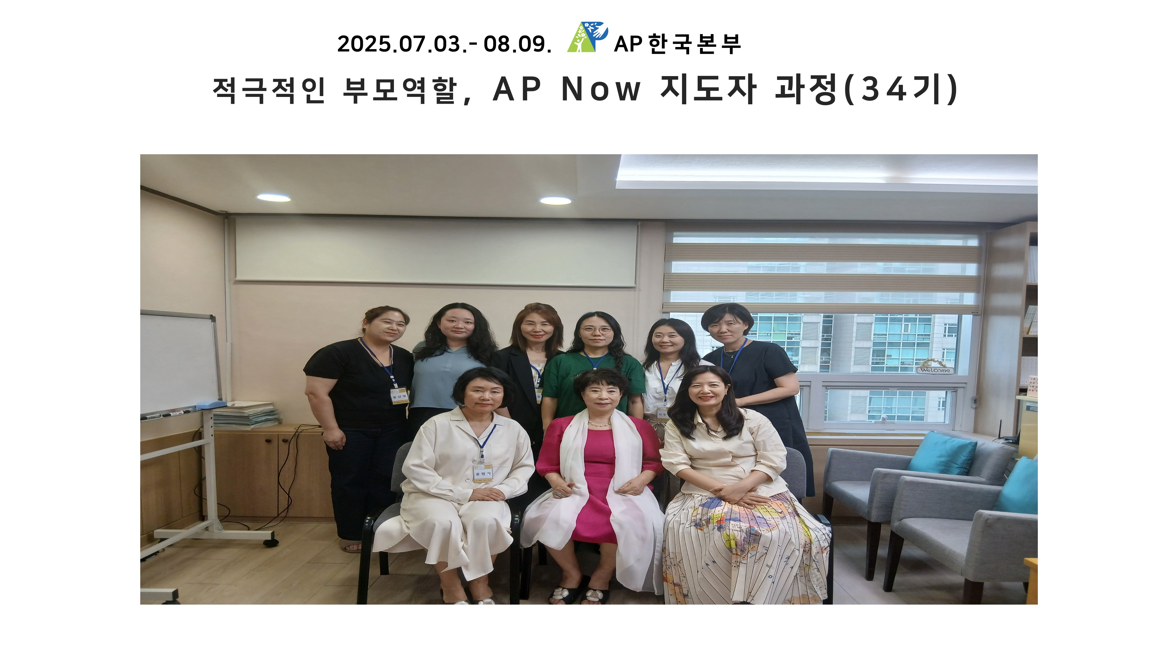 갤러리 커뮤니티 갤러리 Total 27건 1 페이지 게시판 검색 27 2025년 [7-8월] AP Now 지도자 과정(34기) 단체 사진 26 본부장 동정: 강남구 청소년심리지원센터 사이쉼 부모 역할훈련 프로그램 25 본부장 동정: 국민은행 임직원 힐링클래스 자녀양육 특강 24 본부장 동정: 천안 동은교회 교사 및 자녀를 둔 부모(3040)를 위한 실전자녀교육 23 본부장 동정: Johnson & Johnson 팟캐스트 22 2025년 AP Teens 특별단기 지도자과정 21 2025년 [1-2월] AP Now 지도자 과정(33기) 단체 사진 20 본부장 동정: 두루바른 상담의 선을 더하다 특강 19 본부장 동정: Cognex 기업 부모교육 특강 18 본부장 동정: HD현대인프라코어 임직원 알콩달콩 부부 워크샵 17 본부장 동정: 강남구 청소년심리지원센터 사이쉼 아빠 역할훈련 프로그램 16 본부장 동정: 한홀초등학교 위클래스 부모성장교육 15 본부장 동정: 대구교육대학교 교육대학원 부모교육 특강 14 본부장 동정: 한국무역협회 부모 특강 13 본부장 동정: 서귀포시청소년상담복지센터 십대의 적극적 부모역할 열린1페이지 2페이지 맨끝 검색 검색대상 제목내용제목+내용글쓴이글쓴이(코) 검색어 필수 검색 닫기